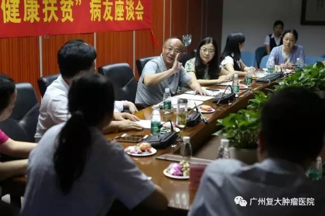↑ 在病友座談會上,梁健對患者們說,精準(zhǔn)扶貧項目開展發(fā)來,復(fù)大腫瘤醫(yī)院已收治不少廉江、興寧、揭西地區(qū)的病人。大家到了這里安心治病,祝你們早日康復(fù)。