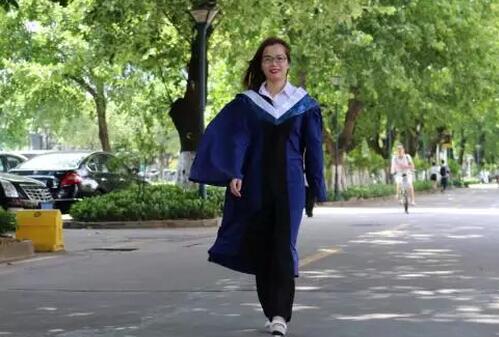 披上藍(lán)色碩士服的那個早上,無數(shù)的“光環(huán)”圍繞著她,人群中顯得格外星光熠熠。