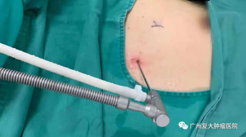 吳先生在接受抗感染治療控制發(fā)燒癥狀、改善右側(cè)氣胸以及胸腔積液的問(wèn)題后,牛立志院長(zhǎng)為吳先生做了左肺結(jié)節(jié)康博刀冷凍消融術(shù),術(shù)程順利。