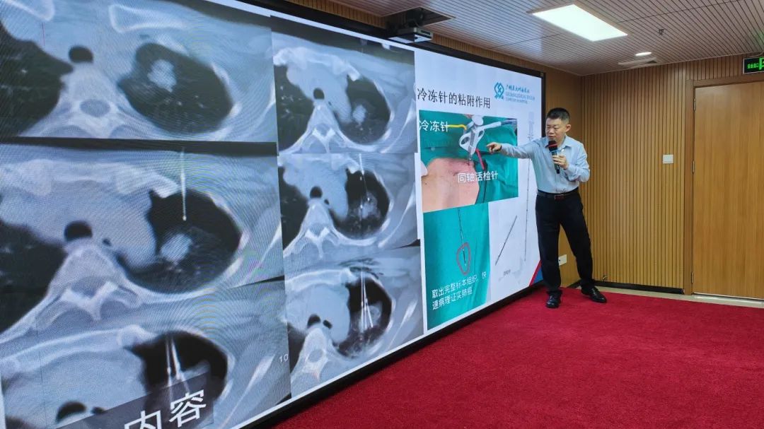 CACA解讀專(zhuān)家、廣州復(fù)大腫瘤醫(yī)院副院長(zhǎng)梁冰以其豐富的臨床經(jīng)驗(yàn)和深厚的專(zhuān)業(yè)知識(shí),用大量的案例分享了肺癌的冷凍消融治療。冷凍消融在早期甚至晚期肺癌中得到越來(lái)越多的應(yīng)用。相較于熱消融如射頻、微波消融等,冷凍消融是利用低溫使病變組織快速降溫來(lái)破壞細(xì)胞,引起細(xì)胞壞死或凋亡,從而達(dá)到治療目的。該療法可以有效消融肺部的腫瘤,尤其對(duì)于肺部腫瘤相對(duì)中央或緊密靠近或侵入到縱隔或胸壁的,更具有優(yōu)勢(shì)。