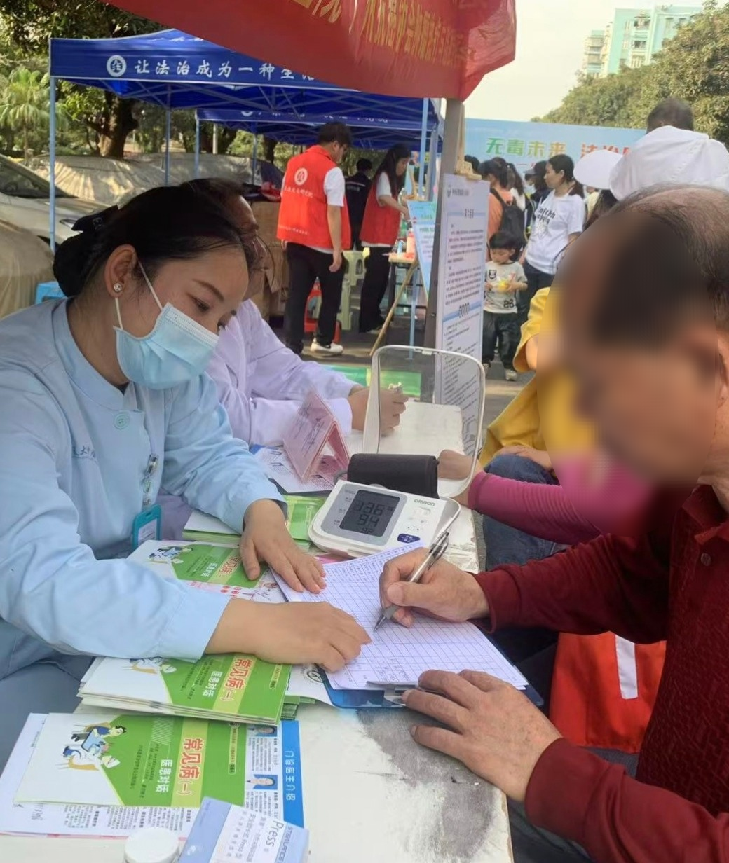 活動(dòng)中,護(hù)長(zhǎng)劉平、護(hù)士頡梅為居民群眾進(jìn)行了血壓測(cè)量、血糖檢測(cè)。對(duì)于血壓、血糖偏高的居民,護(hù)士們提供了飲食、運(yùn)動(dòng)方面的專(zhuān)業(yè)指導(dǎo),并強(qiáng)調(diào)了定期監(jiān)測(cè)的重要性。此外,通過(guò)發(fā)放科普資料,向居民普及腫瘤相關(guān)知識(shí),引導(dǎo)市民樹(shù)立科學(xué)防癌理念,倡導(dǎo)"每個(gè)人做自己健康第一責(zé)任人"的健康意識(shí)。